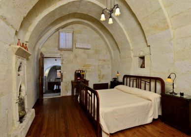 Each of the two stone-arched bedrooms has a king-size bed with soft sheets, feather pillows, bedside tables with good reading lamps, antique wardrobe, and small writing and dressing desk.