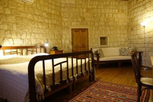 This stone-built Cappadocian hilltop house with 2 rooms & 2 baths, private entrance and parking. Traditional crafts, wood floors make the quiet rooms cozy, but you’ll love morning coffee, daytime sun and evening drinks on the terrace with those panoramic views.